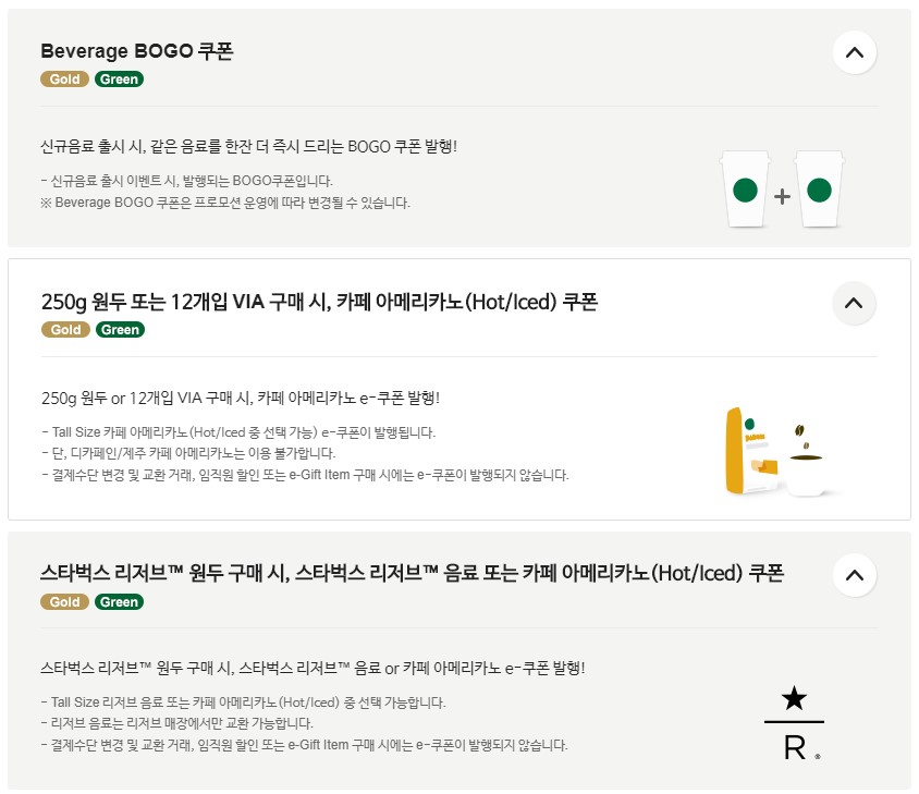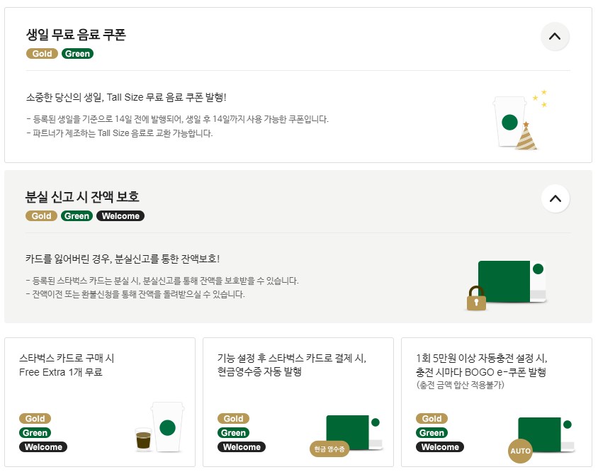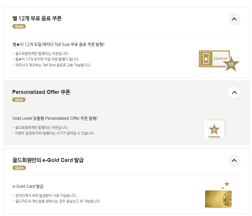 스타벅스 골드 레벨 회원이 받을 수 있는 혜택입니다.