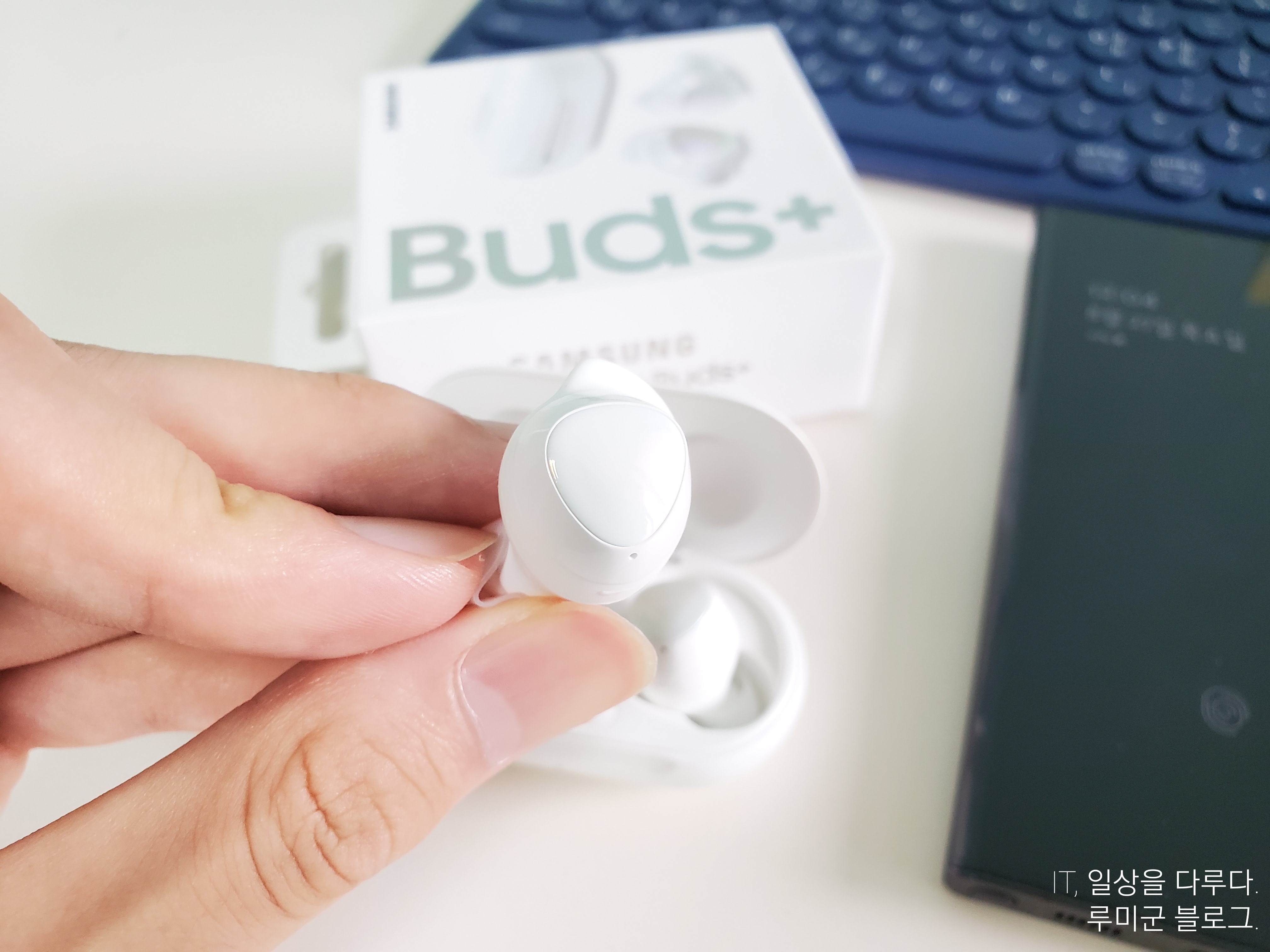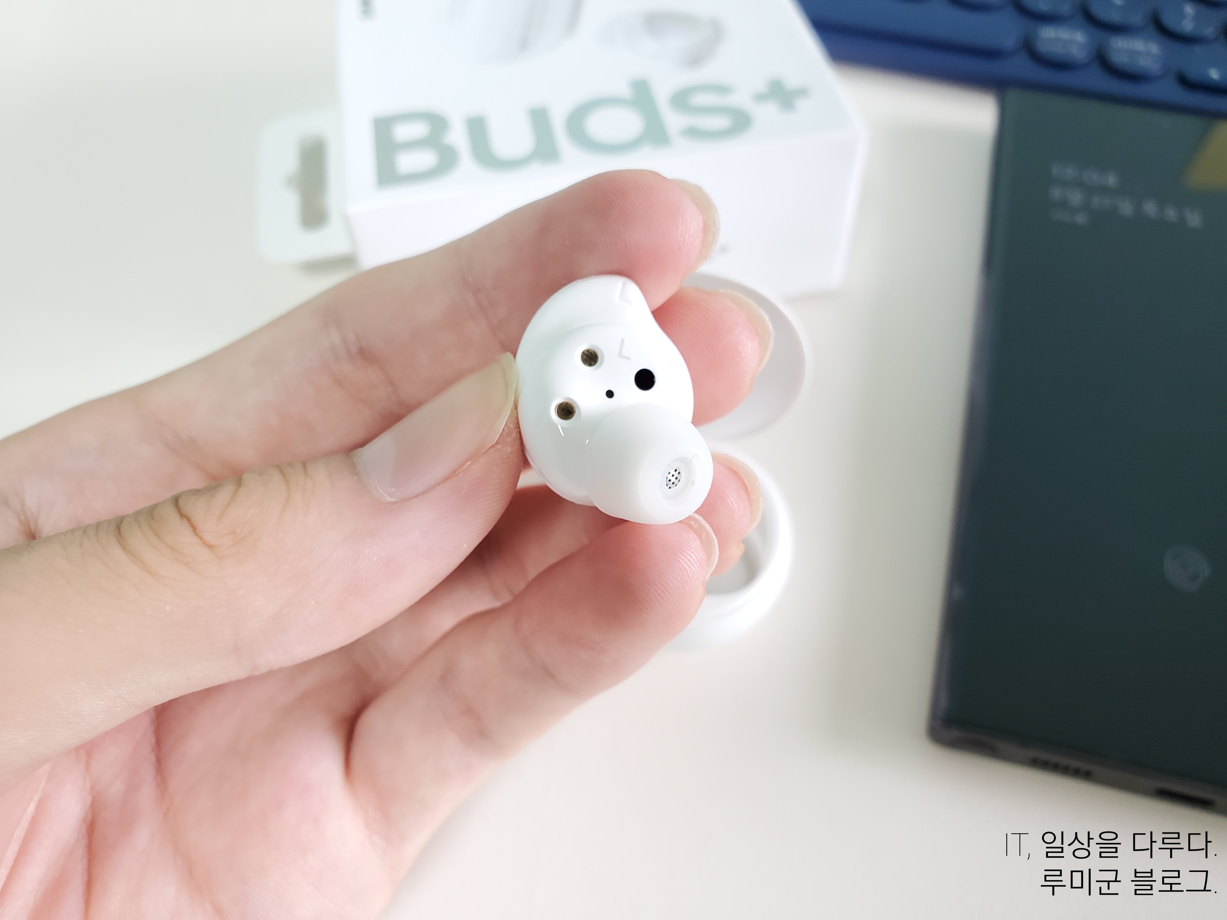 착용감은 저는 좀 답답한 느낌이었어요. 갤럭시 버즈 플러스는 커널형인데 저는 버즈 플러스 사용전 오픈형 이어폰인 에어팟 2세대 모델을 사용했다보니 좀 답답한 느낌이 많이 들었습니다.