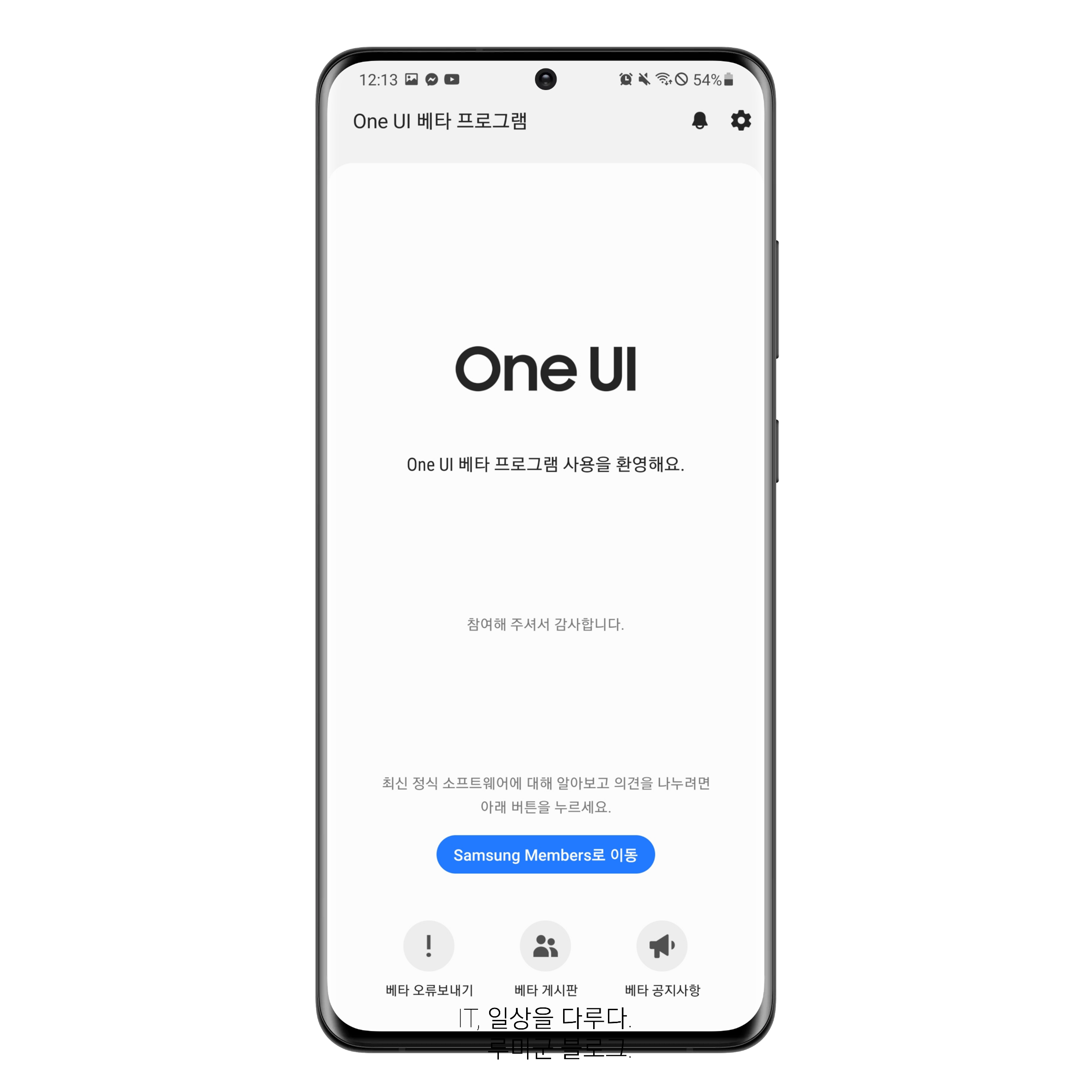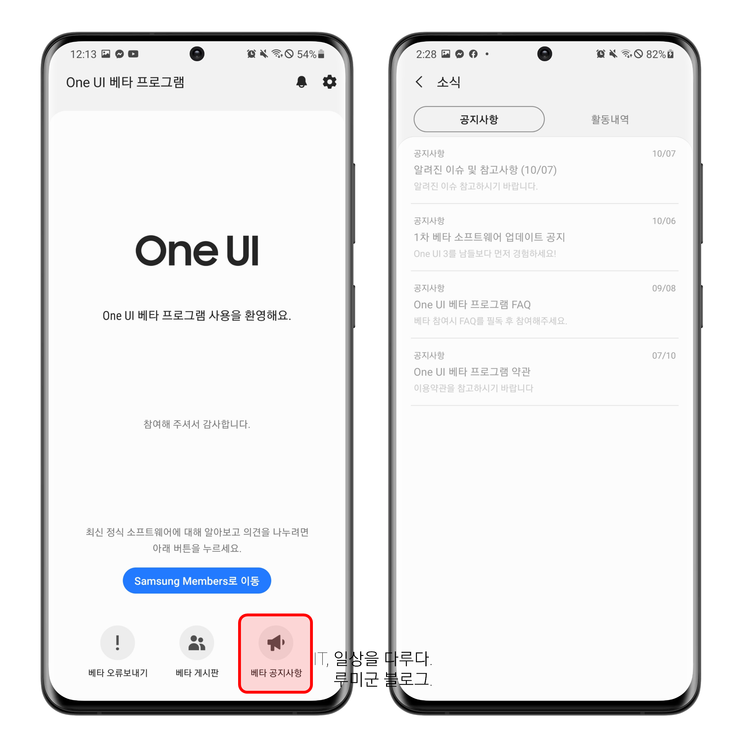 공지 사항에서 "One UI 베타 프로그램 가입하기" 공지 클릭 후 베타 프로그램 신청을 진행하시면 됩니다.