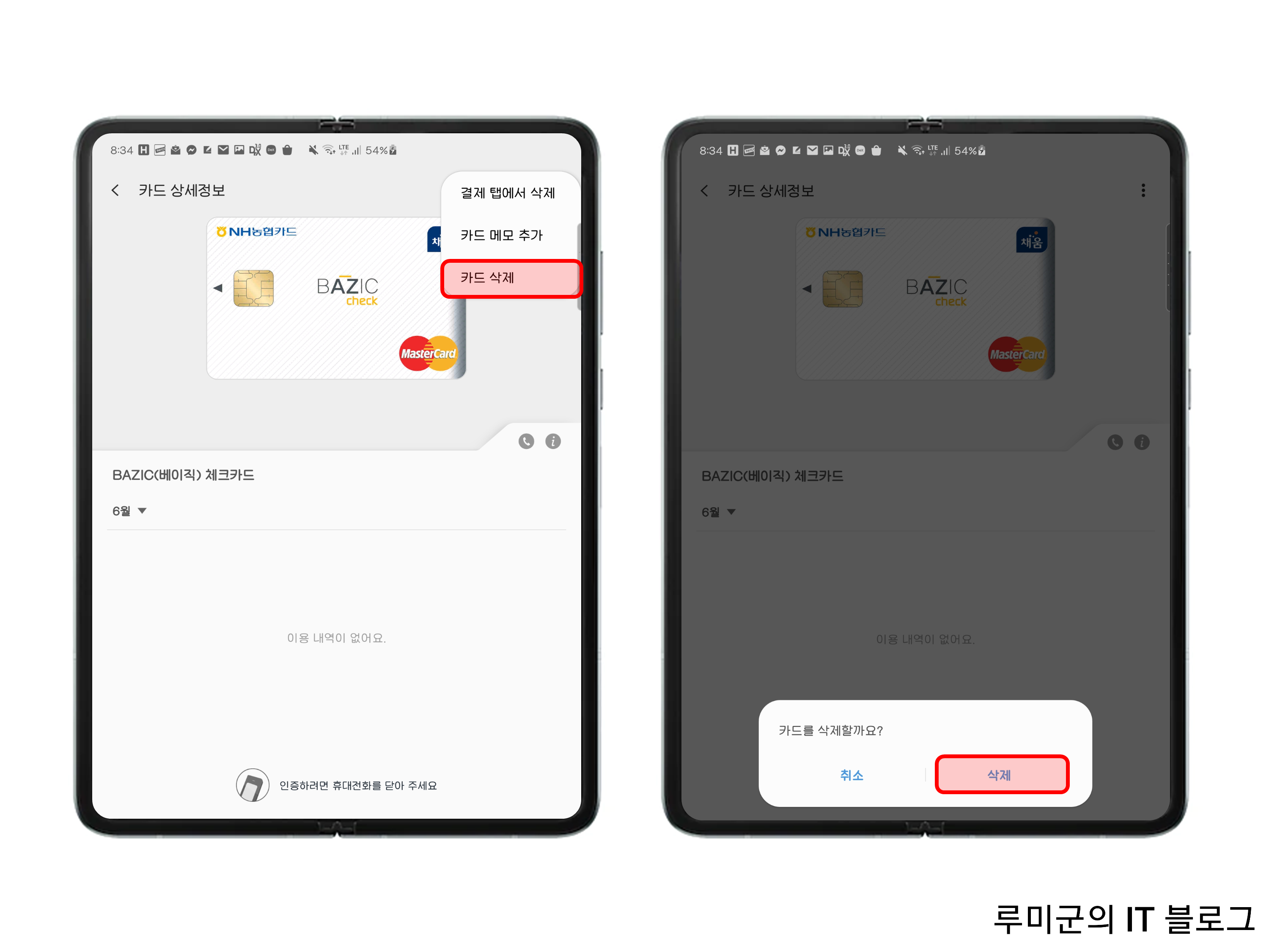 "카드 삭제"를 클릭하고 한번 더 "삭제"를 클릭합니다!